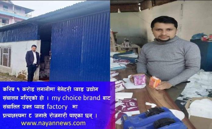 लक्ष्मण विश्वकर्मा,पर्वत /स्वदेशमै आफ्नो श्रम र सीपको उचित प्रयोग गरी केही गर्न चाहनेहरुका लागि प्रशस्तै सम्भावना र अवसरहरु रहेका छन् । नयाँ र रचनात्मक काम गर्ने इच्छाशक्ति र अठोट भएमा असम्भव भने केहि छैन । धन कमाउन बिदेश नै जानुपर्छ भन्ने मान्यतालाई त्यागेर यहाँका ४ दाजुभाइले आफ्नो श्रम, सीप र योग्यतालाई स्वदेशमै लगानी गरी नमुना कार्यको थालनी गरेका छन् । विदेशी उत्पादनलाई चुनौती दिदै पर्वतका ४ जना रिजाल दाजुभाइले सेनेटरी प्याड उद्योग संचालन गरेका छन् । फलेवास नगरपालिका-३, शंकरपोखरीका सागर,विरेन्द्र, सुवास र शिव रिजालले गण्डकी प्रदेशको गैंडाकोट-५, नवलपुरमा रिजाल सेनेटरि प्याड उद्योग संचालन गरेका हुन् ।स्वदेशमै स्वरोजगार र उद्योमी बन्ने सपना बुनेर उद्योग संचालन गरेका रिजाल दाजुभाइ आफुहरु कम्पनीमा काम गरेका छन्, भने अन्यलाई रोजगारी समेत दिएका छन् ।