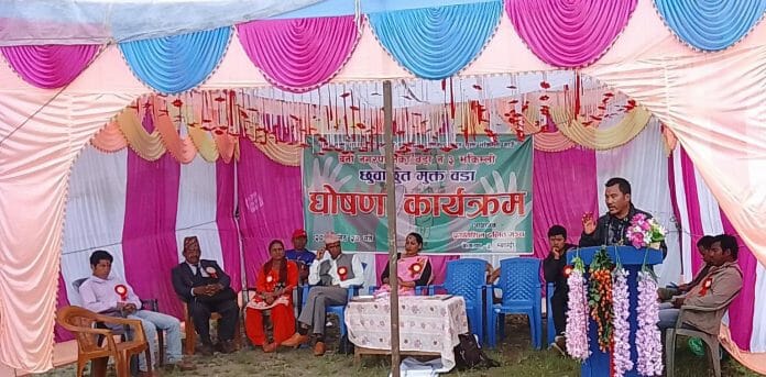 म्याग्दी-म्याग्दीको बेनी नगरपालिका–३, भकिम्लीलाई जातीय छुवाछुत मुक्त वडा घोषणा गरिएको छ । शुक्रबार वडामा आयोजित कार्यक्रममा जातीय उत्पीडनको अन्त्यसँगै छुवाछुतमुक्त वडा घोषणा गरिएको हो । बि.स २०७४ सालदेखि सुरू भएको अभियानमा जातिय छुवाछुतमुक्त क्षेत्र घोषणाको लागि आवश्यक सबै सूचक पुरा भएपछि वडा अध्यक्ष पदम पुनले औपचारीक कार्यक्रमका बिच भकिम्लीलाई छुवाछुतमुक्त वडा घोषणा गर्नुभएको थियो ।