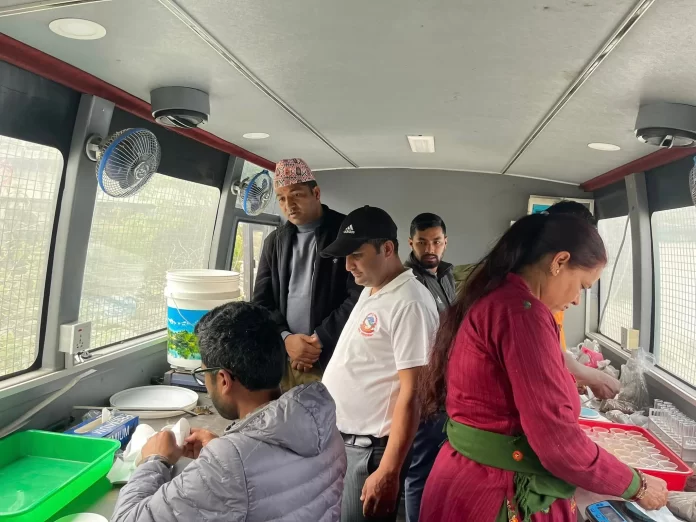माटोको अवस्था पहिचान गर्न घुम्ति मोवाइल भ्यान मार्फत फागुन ८ र ९ गते मिलनचोकमा कृषकहरुले खेतबारीबाट ल्याएको माटोको नमुना परिक्षण गरिएको गाउँपालिकाका कृषि शाखा प्रमुख राजु गौतमले जानकारी दिनुभयो ।