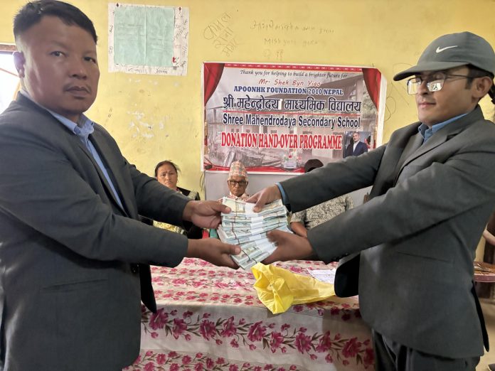 अपुन एचके फाउन्डेसनद्वारा बिद्यालय भवन निर्माणका लागि ८ लाख बढी आर्थिक सहयोग हस्तान्तरण