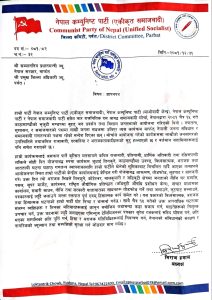 नेकपा (एकीकृत समाजवादी) पर्वतले जिल्ला प्रशासन कार्यालय पर्वत मार्फत सरकारलाई ज्ञापनपत्र बुझाएको छ । पार्टीको केन्द्रिय सदस्य तथा जिल्ला इन्चार्ज मोती प्रसाद पौडेल र जिल्ला अध्यक्ष बिराज हमालको नेतृत्वमा प्रमुख जिल्ला अधिकारी हरि प्रसाद घिमिरे मार्फत सरकारको ध्यानाकर्षण गराउन आइतबार ज्ञापनपत्र बुझाइएको हो ।