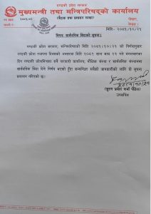 गण्डकी प्रदेश मन्त्रिपरिषदको विज्ञप्ति :